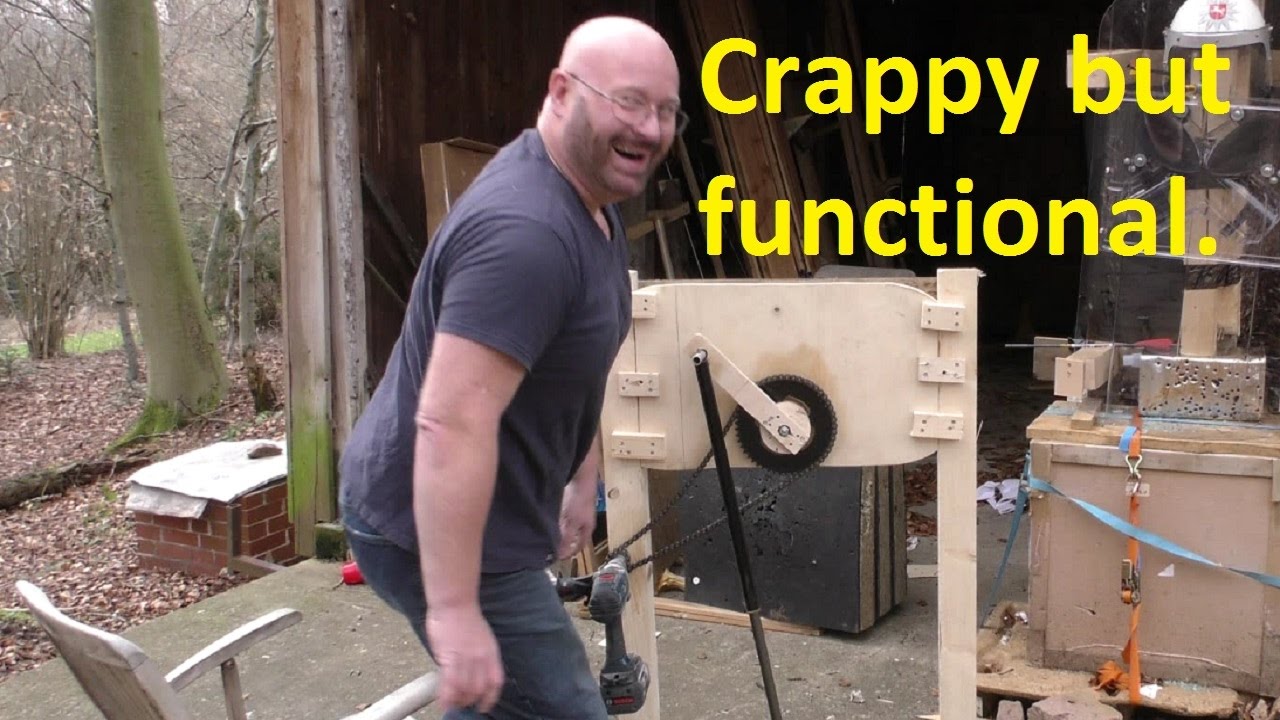 This video shows a very cheap, very quick and very dirty hack how to make a compressor from a hand pump, a battery drill, an old moped chain and sprocket set plus some leftover wood.