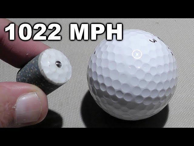 Evan created some slugs out of golf balls. The off-camera test shot yielded around 1500 FPS speeds, or 1022 mph (456 m/s). Will they bounce? There's no way of telling if the dimples have any effect (I hear you asking) but these turned out to fly quite well.