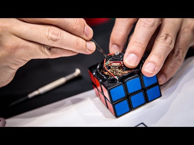 This self-solving Rubik's Cube robot was one of the coolest things we saw at Maker Faire 2019. Its creator Takashi Kaburagi shows us how it works and we take a peek beneath the tiles to see its robotic core. Watch it come alive and perform a solve!