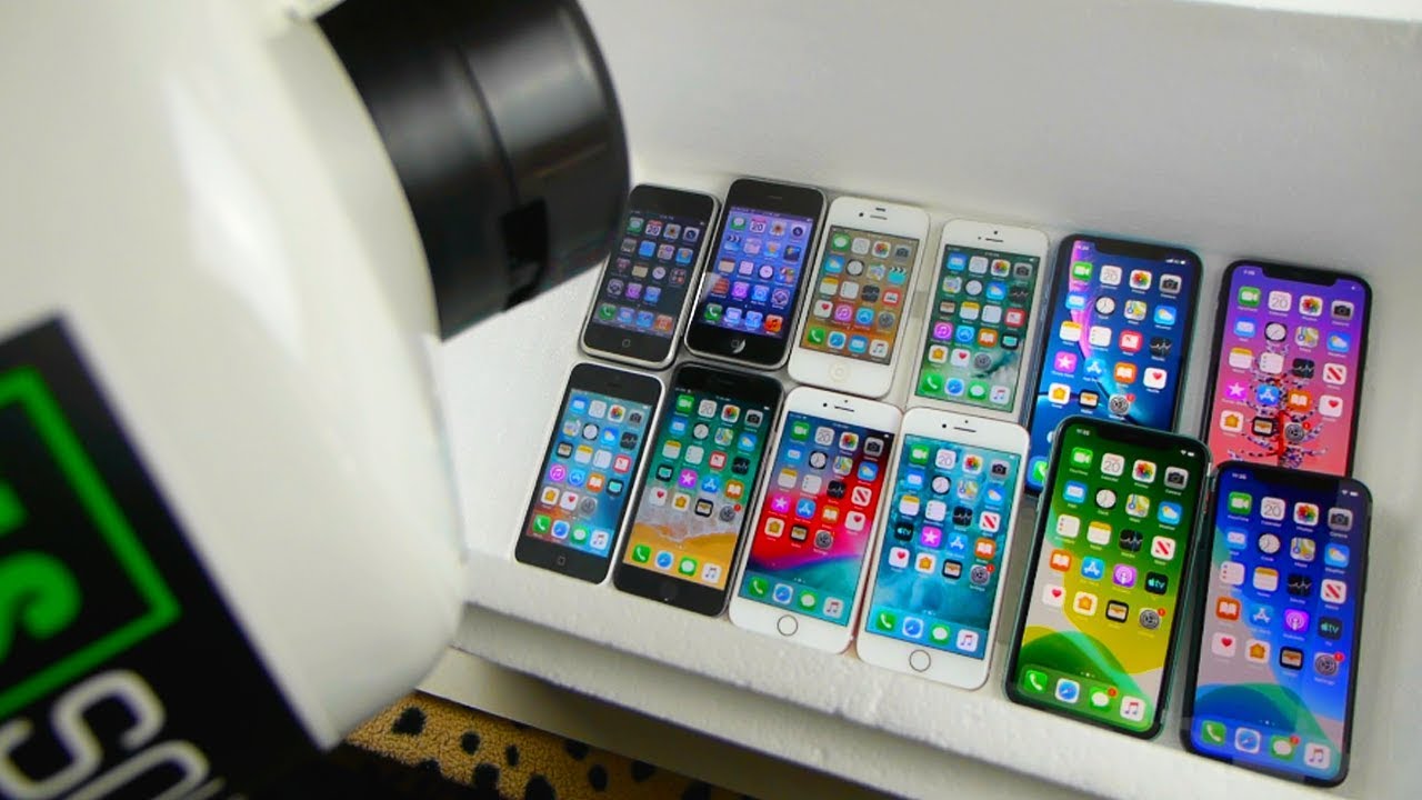 Pouring Liquid Nitrogen On Every iPhone - 11 Pro, 11, XS, XR, 8, 7, 6, 5, 5C, 4S, 3G, 2G Freeze Test ─ TechRax